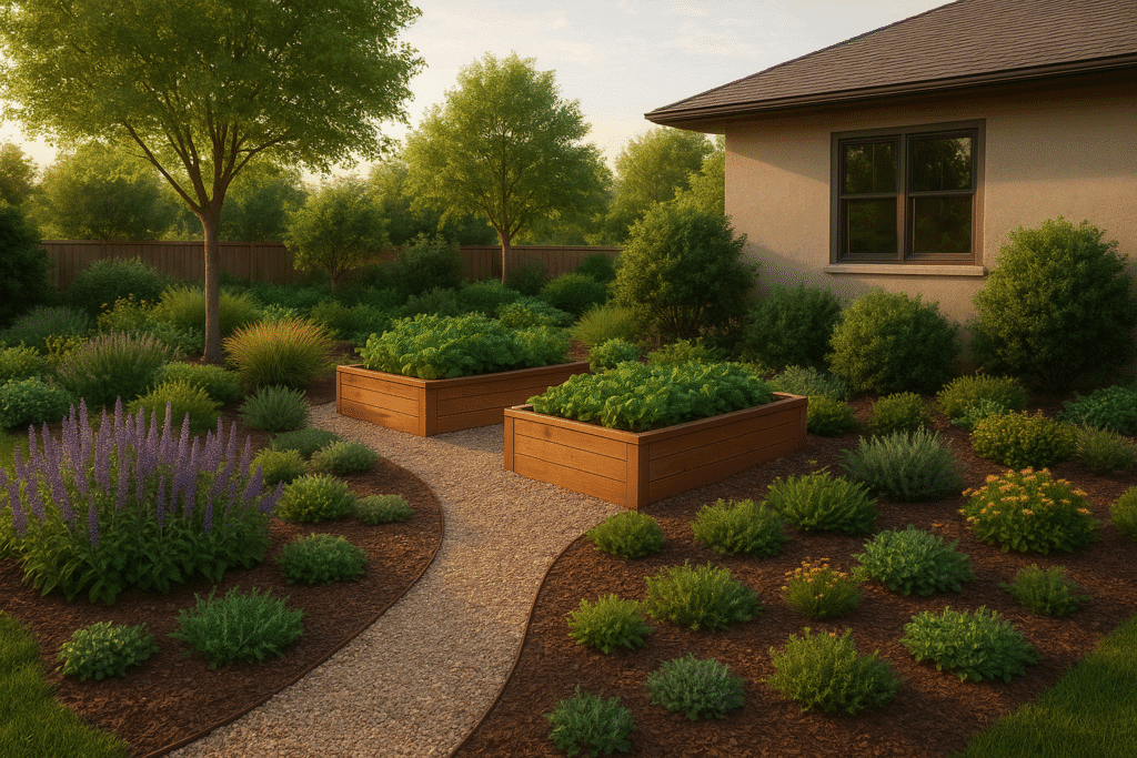 Resilient design means preparing your yard for the future. Select perennial plants over short-lived plants to reduce planting needs. A strategic free placement can cut cooling costs in summer. These choices together can make your landscape both practical and planet-friendly.